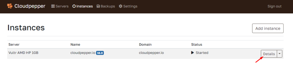 Click on Details of the Odoo instance for which you want to add a repo. This can be a production instance or a staging instance.