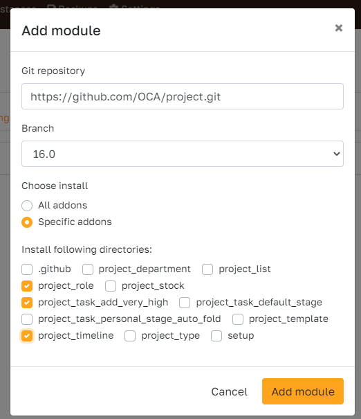 Cloudpepper allows you to select which modules you want to install to your instance.