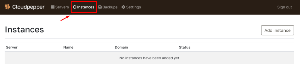 Go to the Instances page on My Cloudpepper.