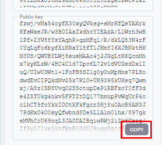 Click the Copy button of the Public key to copy your Public key.